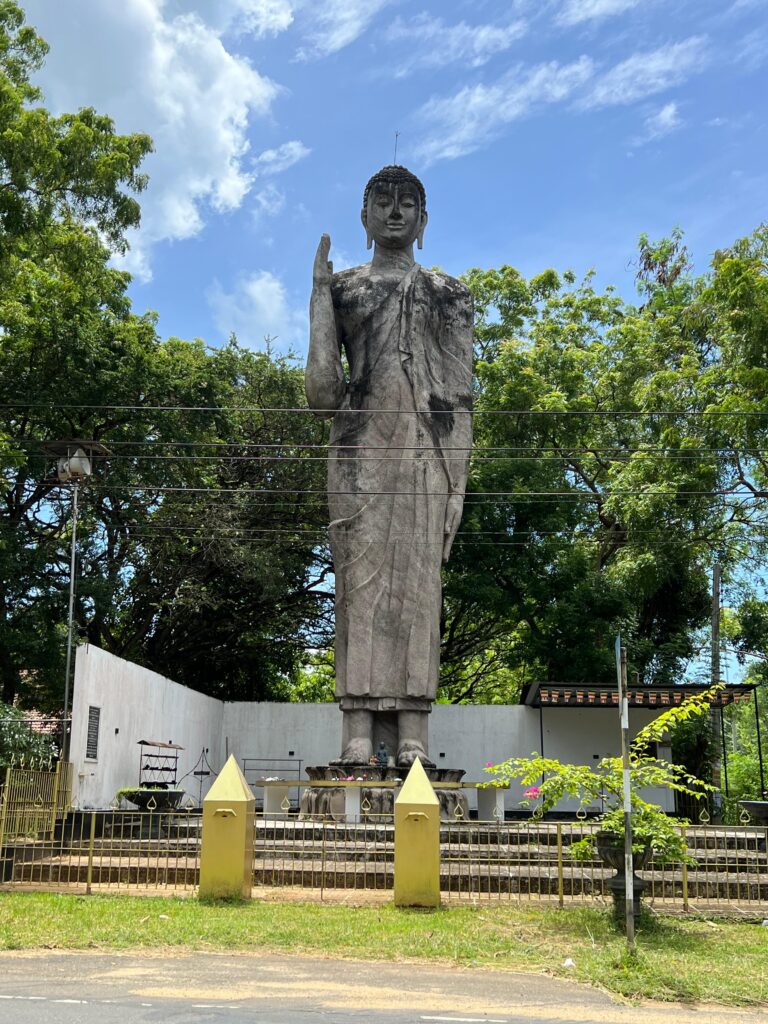 Wie bereits angekündigt haben wir uns gestern Morgen auf den Weg zum Udawalawe Nationalpark begeben. Unser Tuk Tuk Fahrer, Nadin, der uns bereits vom Bahnhof in Tangalle abgeholt hat, brachte uns trotz mehrer Zwischenstopps in Rekordzeit zu unserem Ziel. Er zeigte uns auf dem Weg zum Beispiel eine der vier ältesten und größten Buddha Statuen Sri Lankas, das zweit größte, aber auch modernste, Gefängnis des Landes in der Stadt Ranna und einen großen Staudamm, der die Region Udawalawe mit Strom versorgt.