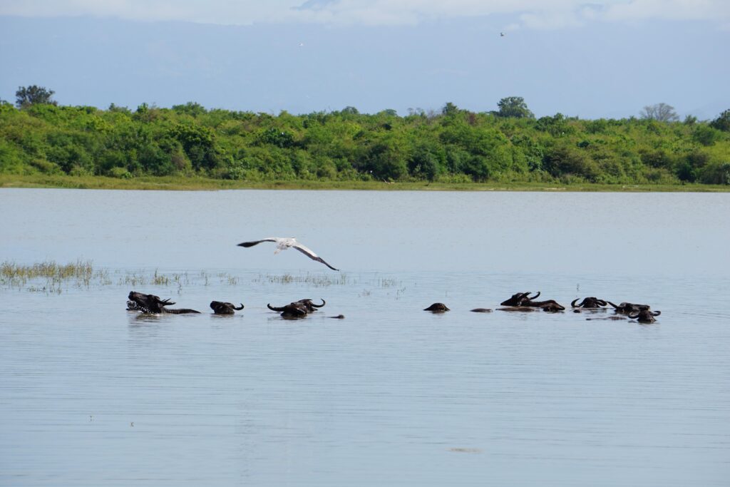 Wir sind jedoch nicht nur für eine schöne Unterkunft hier hergekommen! Der Udawalawe Nationalpark wurde 1972 gegründet und ist mit 300 km² der drittgrößte Nationalpark in Sri Lanka. Er ist besonders bekannt für die ca. 600 frei lebenden Elefanten. Daneben ist das Naturschutzgebiet für viele verschiedene Vogelarten ein Zuhause und ein Badeparadies für Wasserbüffel und Krokodile.
