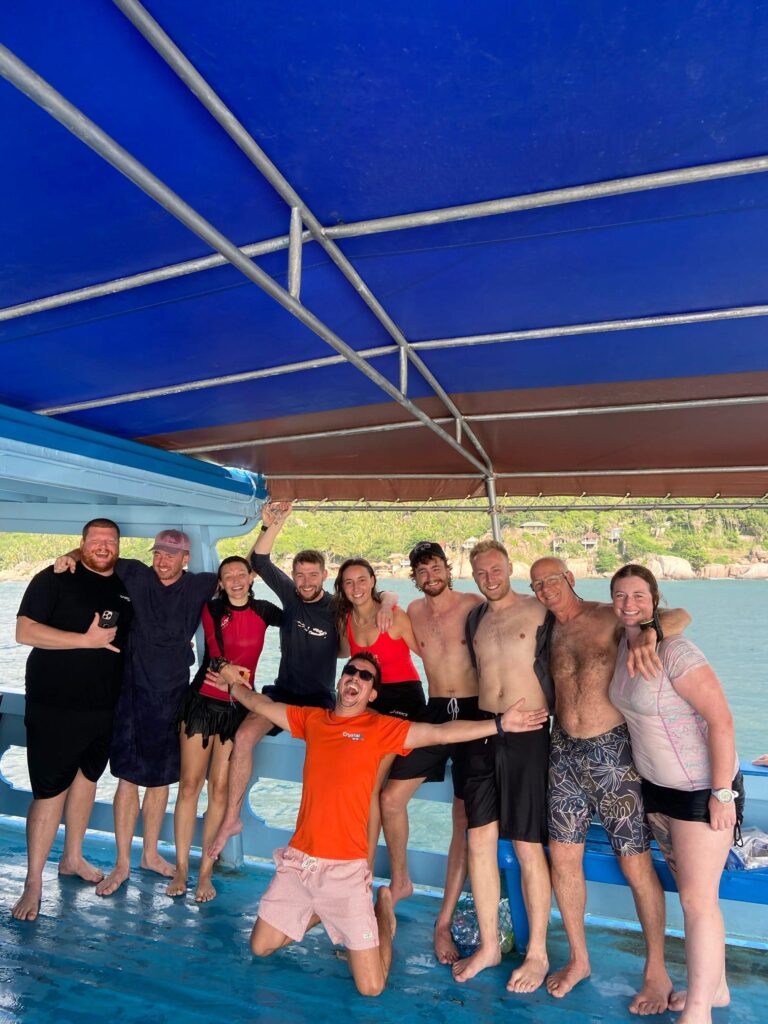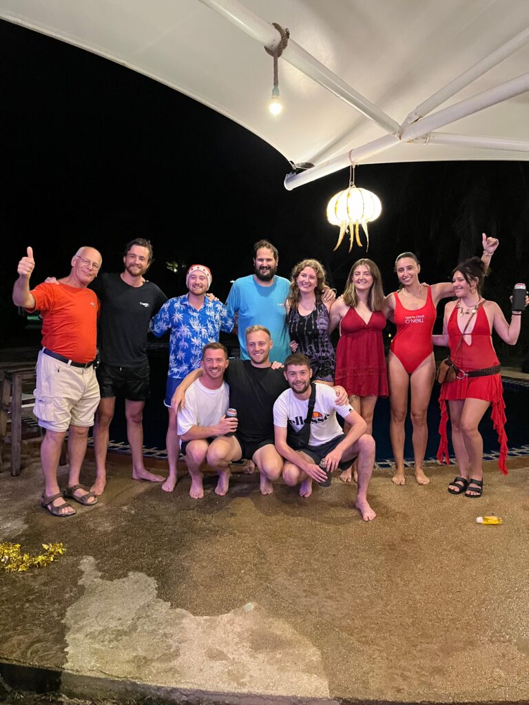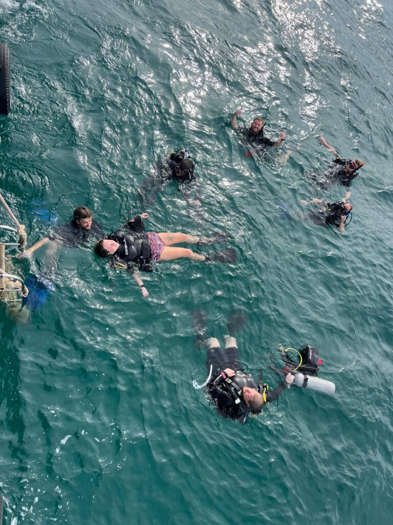 Von gescheiterten Rettungsübungen im Monsoon und Tieftauchszenarien bei 2m Sicht bis hin zum Sieg bei Quizabenden und Bingo in unserer Stammbar „The Local“ -es wurde nie langweilig. Das ganze Programm endete dann mit dem sogenannten Schnorcheltest, den ich mit vier anderen Jungs absolvierte. Dabei wird den jüngsten Divemastern gratuliert und zum finalen Bestehen muss ein ganzer Eimer wild gemischte Alkoholbrühe durch den eigenen Schnorchel getrunken werden. 🥴 🤿 Nachdem das geschafft war, sind wir alle fünf in den Pool gesprungen und waren nun offiziell zertifiziert! 🎉