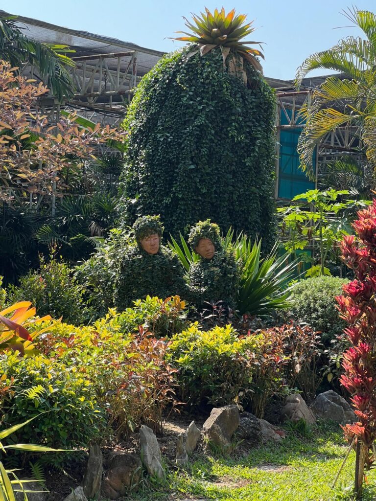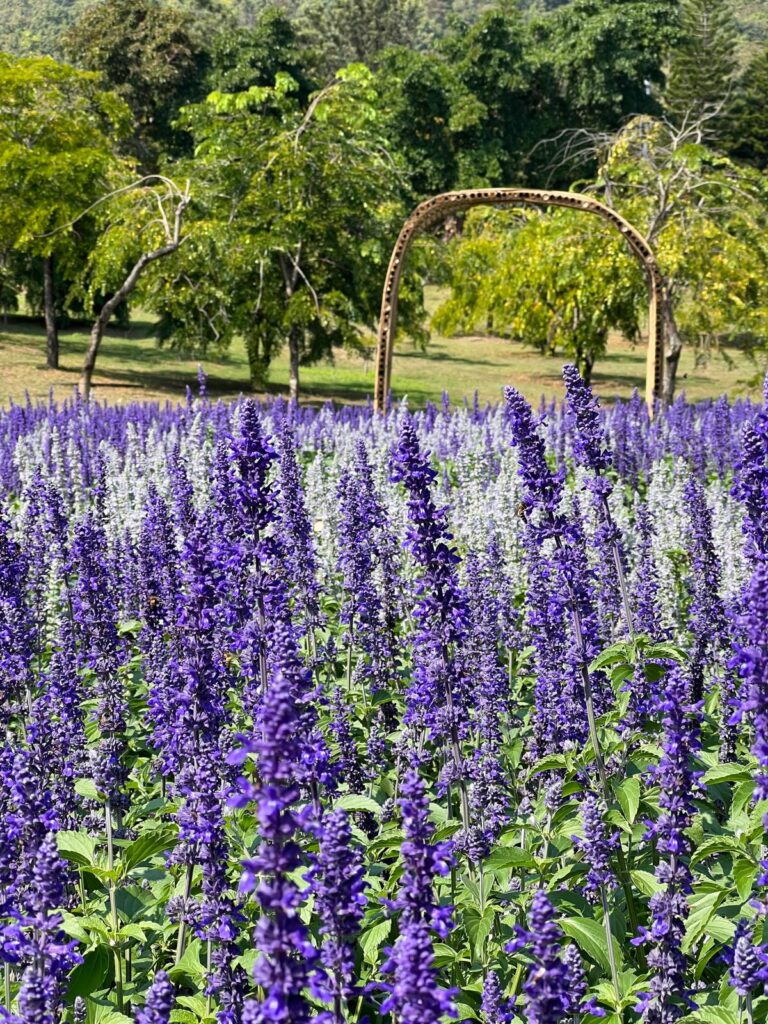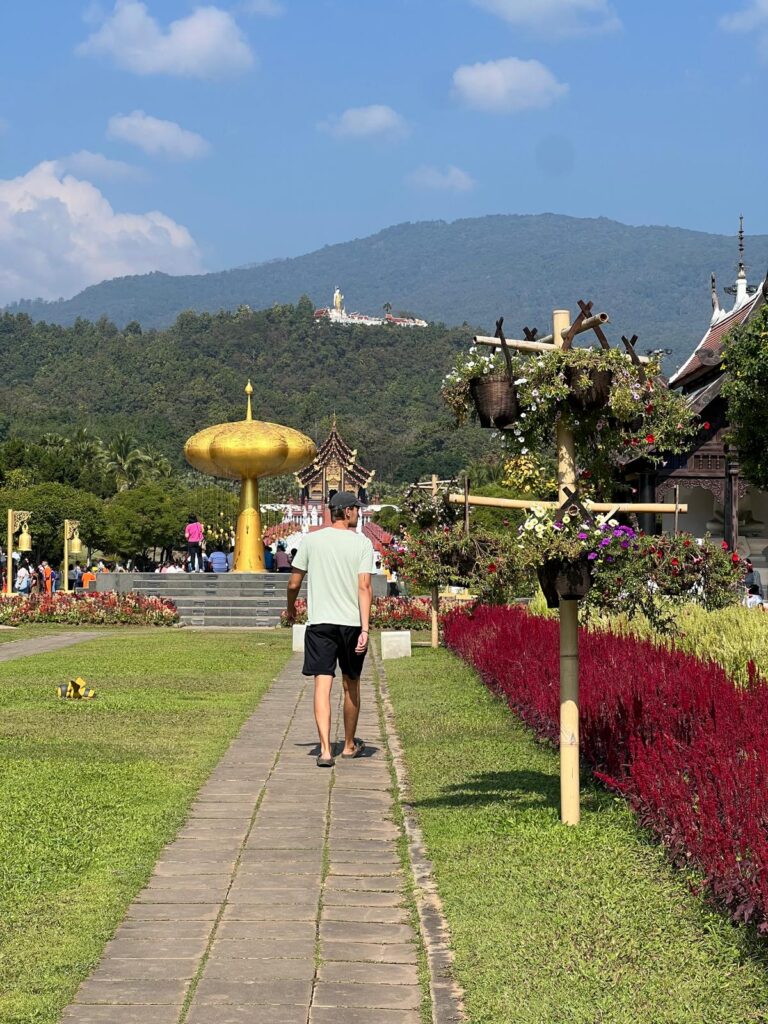 Für den Sonntag planten wir einen kleinen Rollerausflug. Zuerst ging es zum Royal Park Rajapruek. Auf dem riesigen Parkplatz angekommen wunderten wir uns schon, warum wir fast keinen Platz finden konnten. Vor dem Parkeingang tummelten sich hunderte Thais mit Blumen und Geldpräsenten. Unter ihnen erkannten wir schließlich einige Uniabsolventen in ihren traditionellen Roben. Dann war uns klar, dass sie wohl ihren Abschluss im Park zu feiern scheinen. Wir befürchteten das Schlimmste, stellten aber fest, dass sich die Feierlichkeiten nur auf den vorderen Seitenbereich des 112 Fußballfelder großen Parks beschränkten. Da der Park bereits 2006 eröffnet wurde, waren viele Stellen schon etwas heruntergekommen. Dennoch verbrachten wir ein paar schöne Stunden im Palmengarten, Lavendelfeldern und sogar einer Kakteenwüste. ☀️🌸🌺🪻