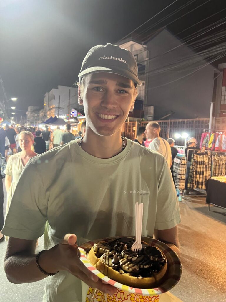 Samstags findet in Chiang Mai der größte Nightmarket Nord-Thailands statt. -also nichts wie hin!😋 Es dauerte sage und schreibe zwei Stunden, um einmal die komplette Marktstraße inklusive der unzähligen Essengassen abzulaufen. Es gab sogar einen Stand mit deutscher Bratwurst! 😁 Hier fanden wir auch endlich unsere gewünschten Souvenirs.
