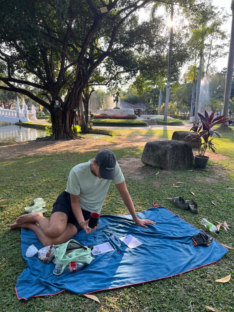 Den letzten Tag verbrachten wir mit essen in unseren Lieblingsrestaurants und kniffeln im Stadtpark, bevor es am Abend wieder Rucksackpacken hieß. Am darauffolgenden Morgen ging es -diesmal mit etwas mehr Puffer 😅- vom Busbahnhof um 11 Uhr mit dem Bus nach Chiang Rai.