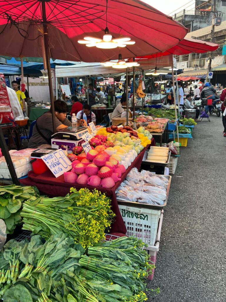 Egal wohin wir kamen, die Menschen entgegneten uns immer sehr freundlich und mit einem einladenden Grinsen auf dem Gesicht. Durch ihre ehrliche Dankbarkeit über unseren Besuch, den Versuch einzelne Wörter auf Thai zu sprechen und über Trinkgeld haben wir uns immer sehr willkommen gefühlt. Die abwechslungsreiche thailändische Küche mit den unzähligen vegetarischen Optionen hat uns sehr begeistert. Auch wenn es uns schwer fällt klare Favoriten zu wählen, ist Lukas Top drei: Green Curry, Khao Soi und Red Curry. Kristin findet es geht nichts über ein leckeres Red Curry mit einem Mango Sticky Rice als Nachtisch. 😋 Auch wenn sich die Gerichte in ihrem Geschmack und der Art der Zubereitung von Region zu Region teils stark unterschieden haben, waren sie immer super yummy und man wurde eigentlich nie enttäuscht! Daher sind wir sehr froh, am Ende noch den Kochkurs mitgenommen zu haben und somit auch in Zukunft unsere Lieblingsgerichte authentisch nachkochen zu können.