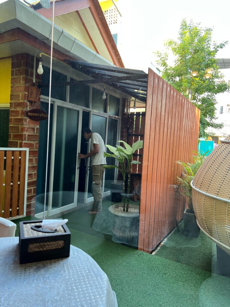 Für unsere zwei letzten Nächte in Thailand wählten wir das Suan Tung Coffee & Guesthouse, welches im Stadtzentrum liegt. Die süßen Zimmer mit eigenem Bad sind im Haupthaus und um den kleinen Garten verteilt. Dort befinden sich einige Sitzmöglichkeiten für Gäste des zugehörigen Cafés und für Hotelgäste zum Frühstücken.