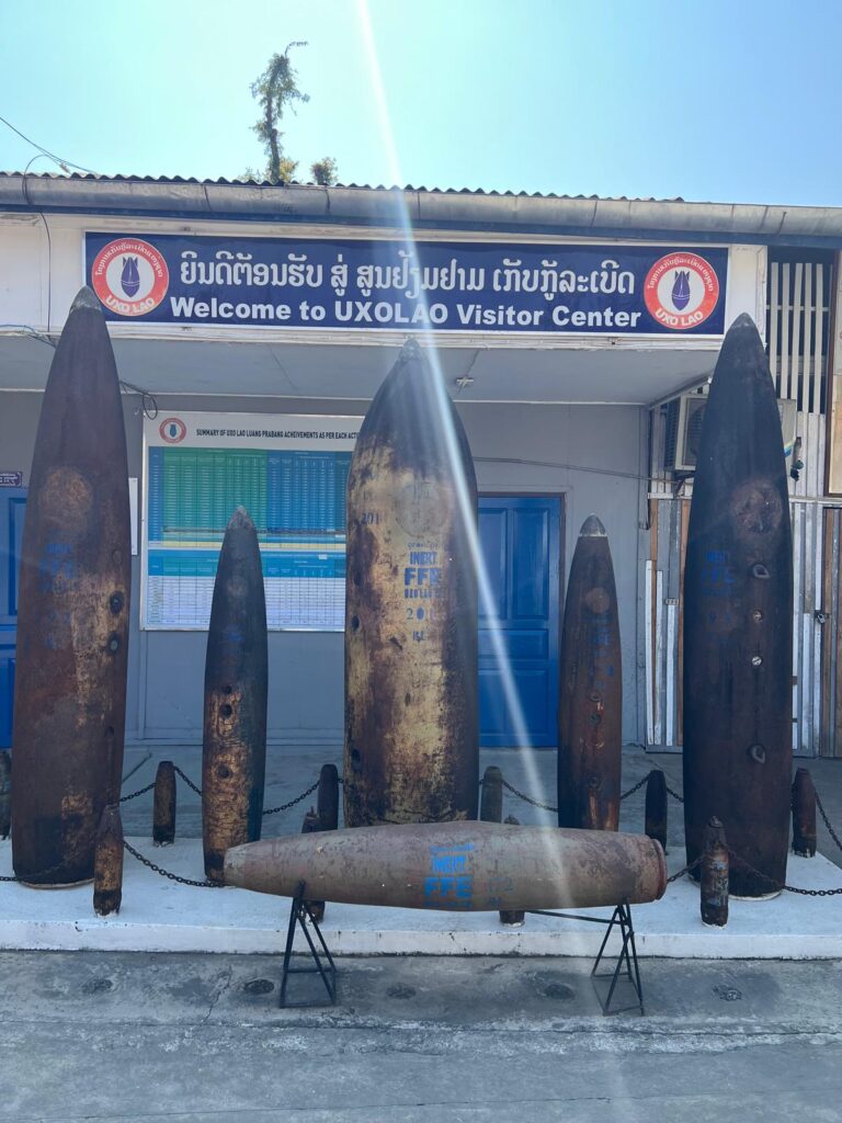 Für unseren letzten richtigen Tag in Luang Prabang wollten wir noch ein paar Lädchen und Stände am Mekong entlang nach Postkarten und Souveniers abklappern -leider ohne Erfolg. Zudem hatten wir gelesen, dass es ein kleines Museum zu den Hinterlassenschaften des Vietnam-Krieges geben soll, was die bestehenden Gefahren der UXO (unexploded ordnances = nicht explodierte Bomben) aufzeigt. Wir lernten, dass 30% der 280 Millionen Bomben, die von den USA über Laos abgeworfen wurden, beim Aufprall nicht explodierten und somit bis heute für Zwischenfälle sorgen. In dem Museum wurde das UXO Programm zur Aufklärung und Beseitigung der Bomben vorgestellt, da vor allem unwissende spielende Kinder in den ländlichen Landesregionen betroffen sind.