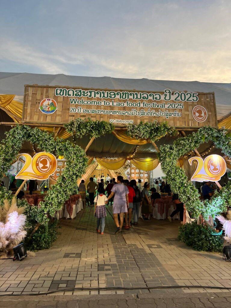 Ebenfalls reibungslos kamen wir nach einer weiteren einstündigen Zugfahrt in Vientiane an. Mit knapp 850.000 Einwohnern ist sie die mit Abstand größte Stadt in Laos. Unser SYRI Guesthouse liegt in einer ruhigen Gegend mitten in der Stadt, sodass wir alles zu Fuß erreichen konnten. Trotz der Größe gibt nicht sonderlich viel zu sehen, sodass unsere zwei Tage vollkommen ausgereicht haben. Gleich nach unserer Ankunft machten wir uns auf den Weg, unser Messer abzuholen. Wir hatten uns den angeblichen Standort der Paketstation abfotografiert und in Google Maps eingespeichert. Als wir dort ankamen war jedoch weit und breit kein Hal Logistics zu sehen. Wir entschieden uns, unser Glück bei der nächstgelegenen Packstation, die wir auf Maps finden konnten, zu probieren. Die gerade mal fünf Minuten Fußweg haben sich gelohnt, denn dort war wie aus Wunderhand unser Paket angekommen. Die navigieren hier wohl anders. 😂 Anschließend liefen wir durch die Straßen bis vor zum Mekong-Ufer, wo wir ein Food Festival entdeckten und uns ein kaltes Getränk für unterwegs kauften. Für ein etwas abwechslungsreicheres Abendessen entschieden wir uns, zu einem indischen Restaurant zu gehen und wurden mit wirklich leckerem Essen belohnt.