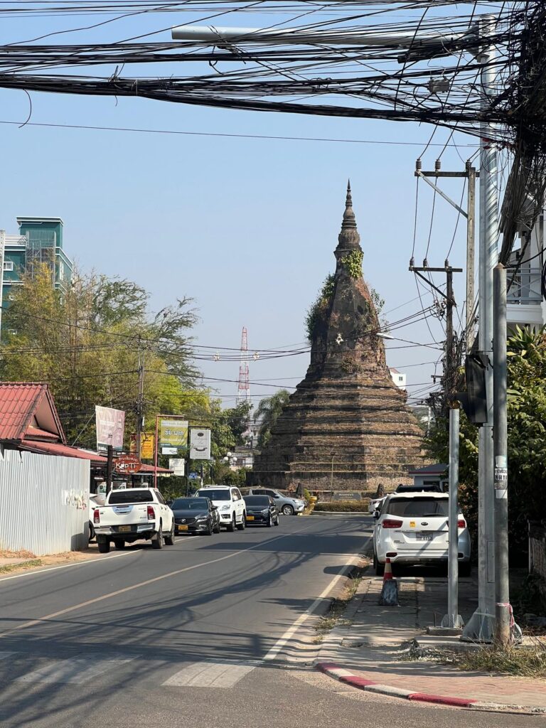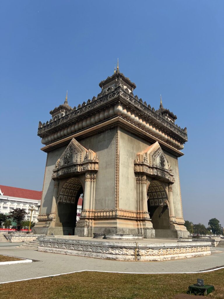 Am nächsten Morgen machten wir uns auf den Weg die drei spannenden Sehenswürdigkeiten von Vientiane zu besichtigen. Darunter fallen die schwarze verfluchte Stupa, der Nam Phou Brunnen und der laotische Arc de Triomphe Verschnitt, das Patuxay Victory Monument.