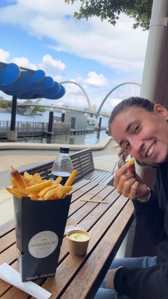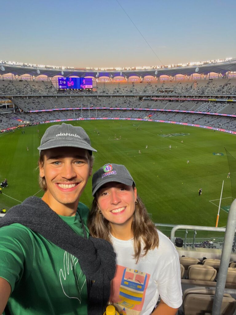 Um auch vollkommen im australischen Leben anzukommen, wollten wir uns ein Australien Football (AFL) Spiel anschauen. Da die Spielregeln sehr simpel sind konnten wir dem Spielgeschehen von Beginn an folgen und für die Heimmannschaft Fremantle Dockers mitfiebern. Obwohl unsere Mannschaft verloren hat, hat es uns sehr viel Spaß gemacht und wird für uns nicht das letzte AFL Spiel gewesen sein. 🏈😊