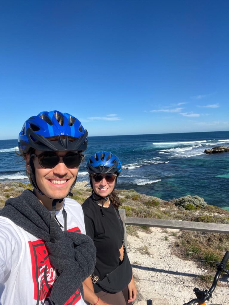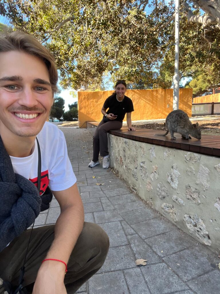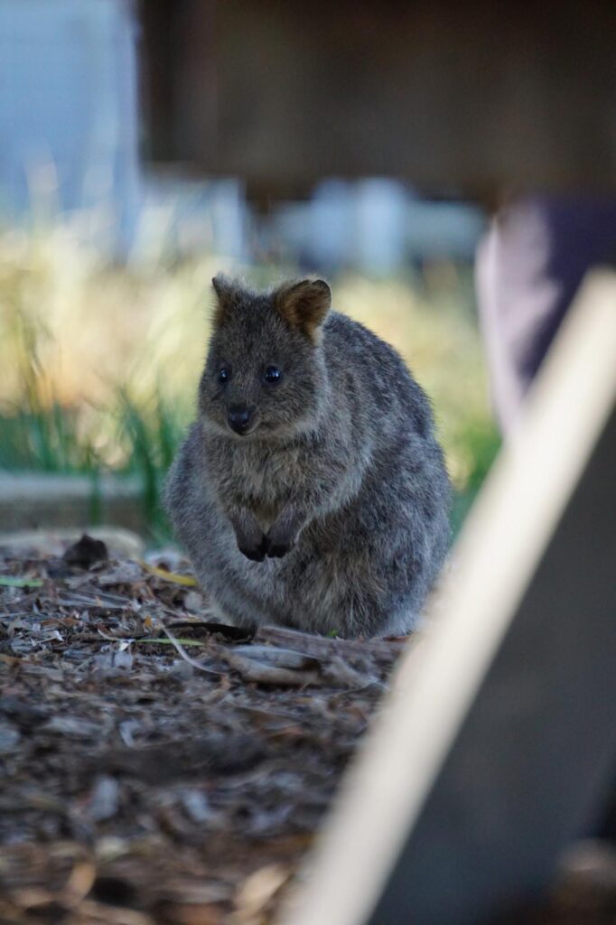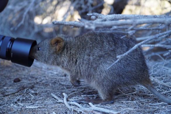 Bei einem Aufenthalt in Perth darf natürlich ein Tagesausflug zu Rottnest Island nicht fehlen, um die wahrscheinlich glücklichsten Tiere der Welt, die Quokkas, zu sehen. Quokkas sind Zwergkängurus, die ausschließlich in Südwest-Australien vorkommen. Auf dieser Insel sind sie an Menschen gewöhnt und daher häufig sehr neugierig. Einmal kam ein Quokka so nah an uns heran, dass es seinen Kopf in Kristins Kameralinse steckte.