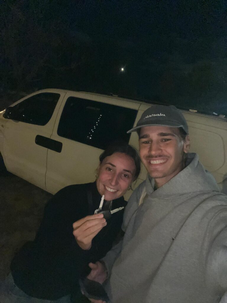 Gesagt getan eröffneten wir uns gleich am ersten Tag australische Bankkonten, besorgten uns SIM-Karten und vereinbarten direkt einen Besichtigungstermin für einen Campervan am Folgetag. Hier läuft alles über Facebook-Gruppen und so hatten wir bereits von Indonesien aus Kontakt mit dem Besitzer. Der weiße Hyundai iLoad Van von 2009 war von Anfang an unser Favorit und bereits zum Campervan umgebaut. 🚐Das Treffen vereinbarten wir an einer lokalen Werkstatt, die direkt eine Runduminspektion durchführte. Da keine wesentlichen Probleme festgestellt wurden und uns das Auto sowohl optisch als auch bei der Testfahrt zusagte, war für uns schnell klar, dass wir das Auto kaufen wollten. Nachdem wir uns auch preislich einigen konnten, sagten wir noch am gleichen Abend zu und verabredeten uns zur Autoübergabe am übernächsten Tag. 😍