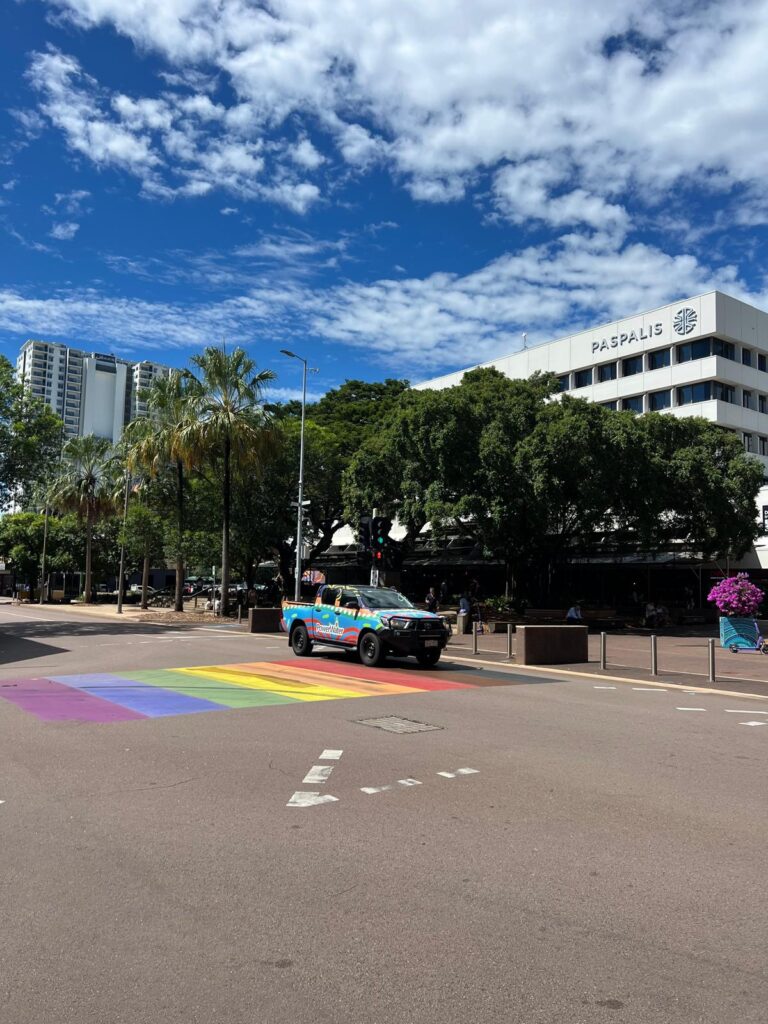 Am 27. Mai kamen wir dann endlich in Darwin an. Da wir die letzte Woche fast ausschließlich auf kostenlosen Stellplätzen ohne warme Dusche und selten sauberen Toiletten verbrachten, gönnten wir uns zwei Nächte auf einer tollen Anlage in der Stadt. Mit 120.000 Einwohnern leben hier mehr als 50% der Bevölkerung des Northern Territorys. Bei heißen Temperaturen von tagüber bis zu 35 Grad ließen wir einfach mal die Seele baumeln, bummelten durch die Stadt und erkundigten uns im gleichen Zuge über den Litchfield Nationalpark. Auf dem Weg dorthin erspähte Kristin, sogar während dem Fahren über eine Brücke, unser erstes Süßwasser Krokodil! 🐊😍