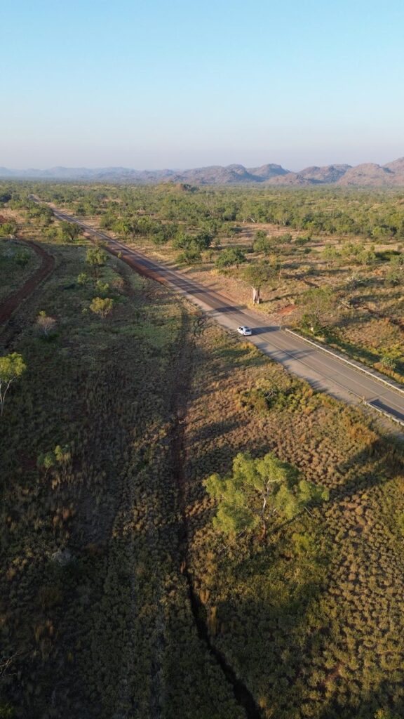 Für uns ging es am späten Nachmittag noch das letzte Stück bis kurz vor Kununurra durch die wunderschöne Kimberley Region. Mit den saftig grünen Wiesen, dichten Bäumen und der hügeligen Landschaft war es für uns persönlich bisher der schönste Streckenabschnitt. In der Abendsonne sah es fast schon ein bisschen episch und surreal aus, als auch plötzlich Wildpferde (Brumbies) in der Ferne davon galoppierten. 💚🌳🐴
