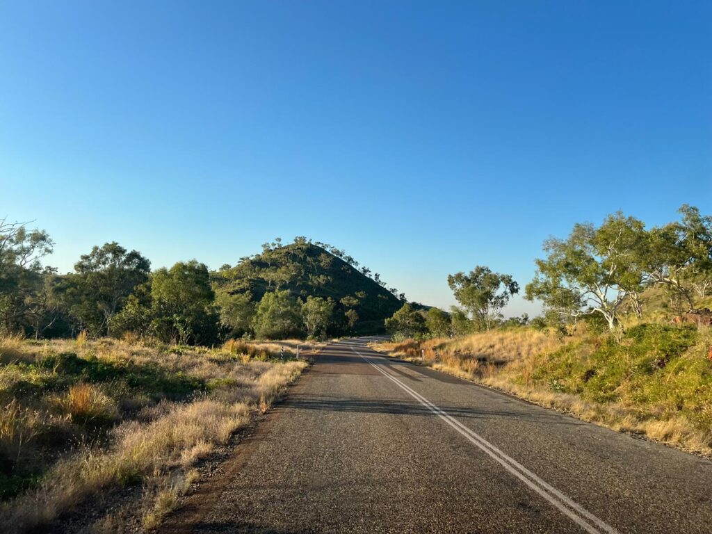 Nach einer weiteren Nacht im Nationalpark reichte es uns dann auch mit der Hitze im Norden, da es selbst nachts nur auf 27 Grad „herunterkühlte“. 🥵Also entschieden wir uns, den bevorstehenden Weg von 2400km an die Ostküste so schnell wie möglich zu beschreiten. Insgesamt waren wir vier Tage und drei Nächte unterwegs und überquerten bereits am ersten Tag die Grenze nach Queensland. Bis auf einen überraschend schönen Badesee am zweiten Tag im Örtchen Richmond, wo wir sogar kostenlos duschen konnten 😎, war es landschaftlich ziemlich öde und es gab wirklich gar nichts zu sehen. Das stundenlange Fahren durchs Niemandsland war jedenfalls deutlich anstrengender als anfangs gedacht. Da wir die meiste Zeit keinen Handyempfang hatten und es mehrere hundert Kilometer keine Ortschaften oder Dörfer gab, durften wir nicht allzu viele Gedanken an mögliche Autopannen oder ähnliches verschwenden. Das wird einem dort erstmal richtig bewusst. 🫣 Zum Glück ist ja aber alles gut gegangen. 😊