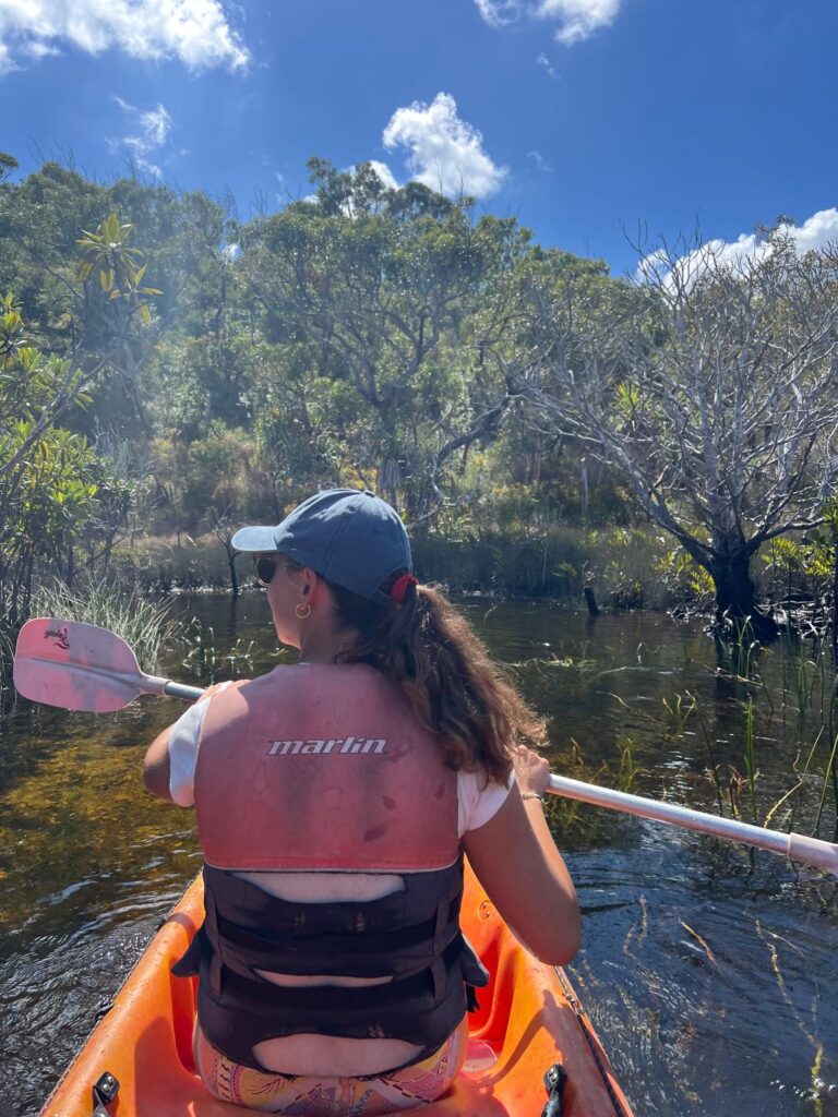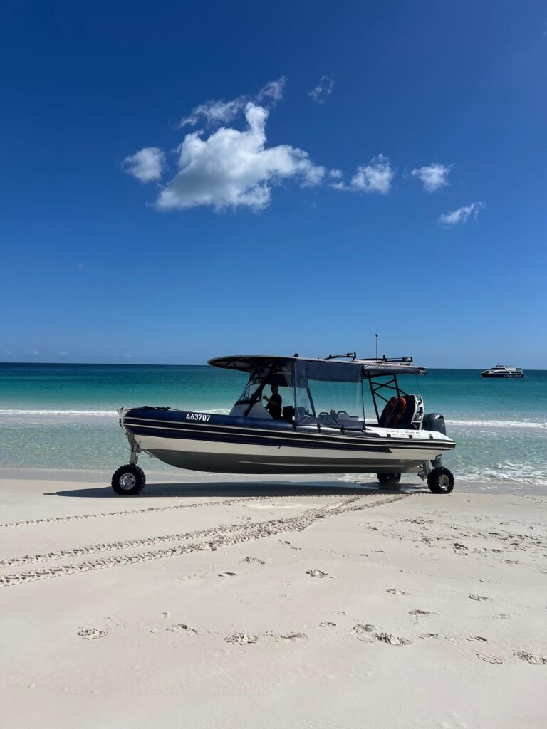 Nach gut einer Stunde führten wir unser Programm in Richtung Fraser Island fort. Mit kleinen Booten mit ausfahrbaren Rädern wurden wir sogar ohne nasse Füße bis zum Strand gefahren. Wir hatten die Möglichkeit, einen wunderschönen menschenleeren Strand zu genießen und konnten optional eine Runde Kanu auf einem Süßwasserfluss fahren. 🛶