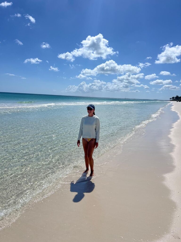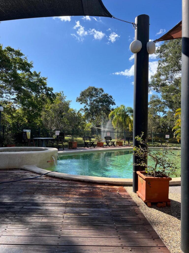 Am 22. August sind wir wie bereits angekündigt am späten Nachmittag in Hervey Bay eingetroffen. Wir hatten uns das Collonial Village in der Nähe des Hafens für drei Nächte gebucht. Am nächsten Morgen ging es erstmal auf Erkundungstour den Hafen entlang und in das kleine Städtchen. Mit wunderschönem Blick aufs Meer gönnten wir uns einen leckeren Salatteller zu Mittag und verbummelten die Zeit. Zurück auf dem Campingplatz war es mal wieder Zeit für eine Runde Tennis auf dem zugehörigen Asphaltplatz! 😅 Trotz ein paar Unebenheiten und Löchern reichte es locker für unser Niveau und machte sehr viel Spaß. 🎾