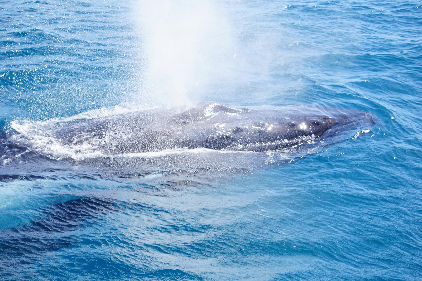 Auf dem Rückweg machten wir nochmals 1,5 Stunden Halt im Platypus Bay und hatten erneut Glück, unzählige Buckelwale beobachten zu können. Einmal konnten wir sogar sieben Buckelwale auf einmal aus nächster Nähe sehen! Wirklich unglaublich! 🤯