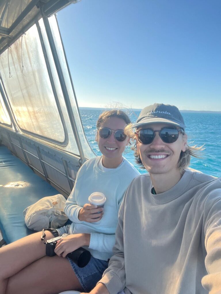 Nachdem wir bereits am Abend unseren Rucksack gepackt hatten, ging es direkt am nächsten Morgen früh los zum Hafen. Unsere gebuchte Ganztagestour ging mit dem Schiff durch das sogenannte Platypus Bay bis auf die abgelegenere Strandseite von Fraser Island. Sie wird auch in indigener Sprache K’gari genannt und ist die größte Sandinsel der Welt.