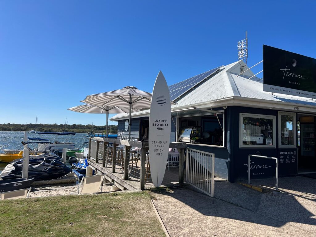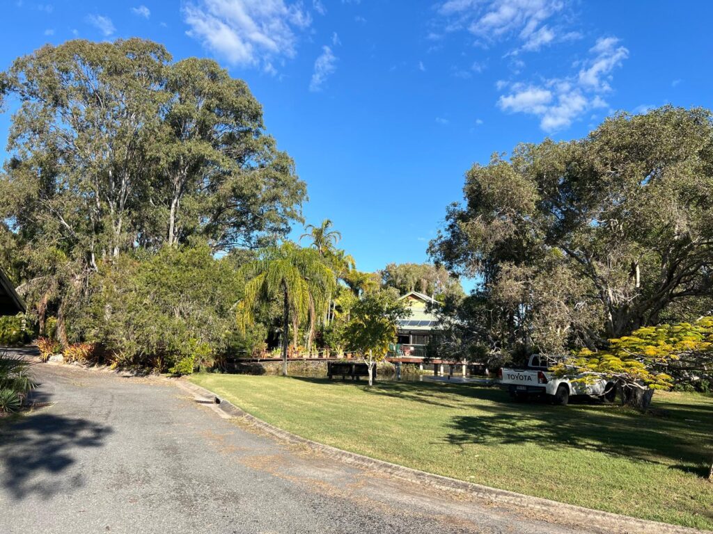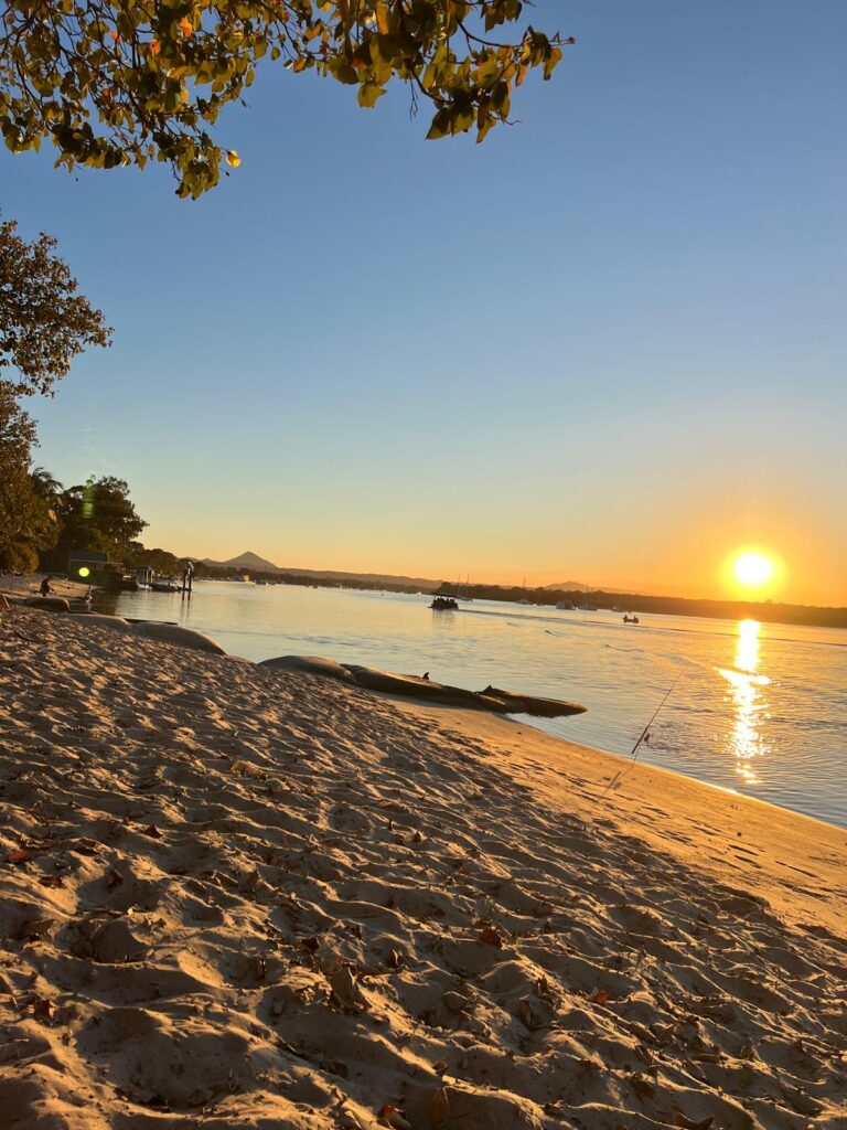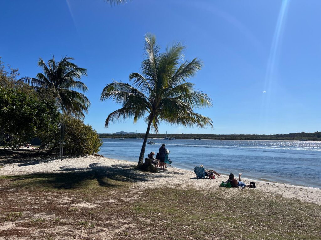 Am nächsten Morgen machten wir uns für fünf Nächte auf den Weg nach Noosaville. Noosa ist ein lebhaftes Urlaubsgebiet an der Sunshine Coast und bekannt für Wassersportaktivitäten und den Noosa Nationalpark. Unser Campingplatz, der Noosa River Holiday Park, lag direkt am Fluss kurz vor der Mündung ins Meer. Glücklicherweise lag unser Stehplatz in zweiter Reihe und wir hatten einen wunderschönen Blick aufs Wasser. Da die Fahrt nach Noosa für australische Verhältnisse sehr kurz war und wir bereits zur Mittagszeit ankamen, nutzten wir den restlichen Tag, um uns einen ersten Eindruck des kleinen Städtchens zu verschaffen. Auf unserem Weg in die Stadt waren wir wirklich beeindruckt von einer großen Vielzahl an schönen und luxuriösen Häusern direkt am Wasser und uns wurde direkt klar, warum es neben den Touristen auch bei den Australiern ein beliebtes Reiseziel ist.