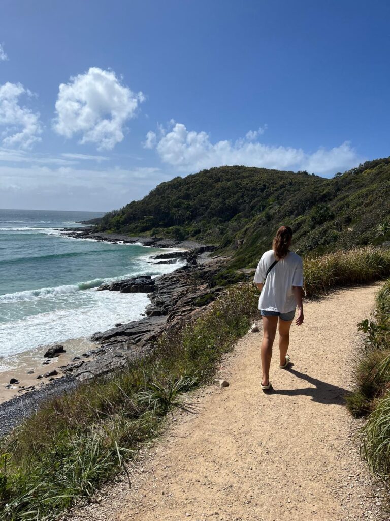 Für den darauffolgenden Tag hatten wir uns die 8 Kilometer lange Wanderung durch den Noosa Nationalpark vorgenommen. Die ersten zweieinhalb Kilometer führten direkt an der Küste mit wunderschönem Blick aufs Wasser entlang. An der Spitze angekommen, erspähten wir in der Ferne erneut Buckelwale und eine Schule von Delfinen. 🐬