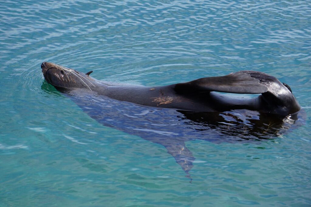 Am Morgen vom 25. September begaben wir uns auf die Weiterreise und wollten ein paar Kilometer hinter uns bringen, da es auf diesem Streckenabschnitt nicht all zu viel zu bewundern gab. Ein Urlauber aus den Blue Mountains hatte uns einen Halt bei Narooma empfohlen, da es dort viele Fischer und somit auch andere hungrige Räuber an der Küste zu beobachten gibt. Angekommen an der Bootsrampe und dem kleinen Mill Boardwalk konnten wir ganz nah drei Seelöwen im Wasser planschen und auf dem Steg liegen sehen. 🦭 Sie warteten dort den ganzen Tag geduldig, bis die Fischer zurückkamen und ihre Fischreste dort ins Wasser warfen. 😋 Bei unserem kleinen Spaziergang zum nahegelegenen Strand konnten wir noch viele mehr auf Felsen in der Sonne dösen sehen und sogar nochmal zwei Buckelwale aus der Ferne bestaunen! 🐋