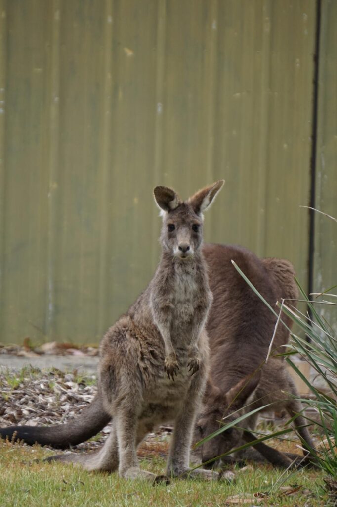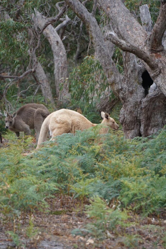 Als wir uns dem etwas dichter bewachsenen Buschland näherten, haben wir zusätzlich unser größtes Känguru gesehen! Es war Aufrecht bestimmt so groß wie Lukas und ist uns durch seine helle Färbung direkt ins Auge gestochen. Scheinbar handelte es sich trotzdem um ein graues Riesenkänguru. 🦘