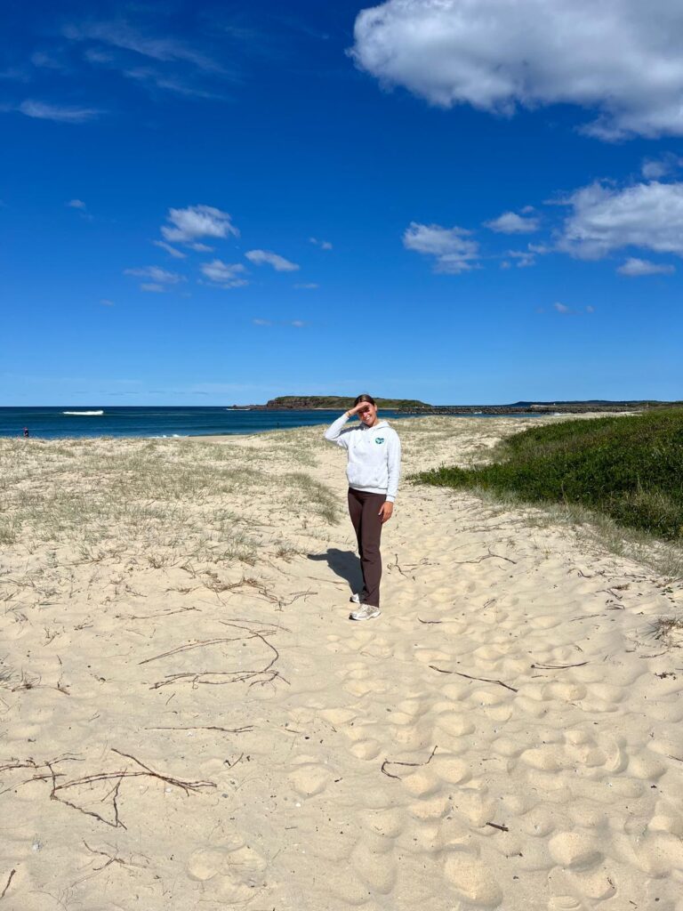 Nach dem Frühstück im Grünen ging es wieder auf die Straße und zurück an die Küste. Unser nächstes Ziel war das keine 60km entfernte Örtchen Huskisson am Jervis Bay. Hier buchten wir uns zwei Nächte auf dem Holiday Haven Huskisson Beach Campingplatz und lieferten wir uns direkt nach der Ankunft erst einmal ein spannendes Tennismatch. Am Folgetag schlenderten wir durchs kleine Dörfchen, lasen ein bisschen am Meer und spielten erneut eine Runde Tennis. 🎾 Mit wunderschönen weißen Stränden und glasklarem Wasser ist die Region rundum Jervis Bay wirklich wunderschön, nur für unseren Aufenthalt hätte es 5 Grad wärmer und etwas windstiller sein können. 🥴 Je näher wir der Südküste kommen desto kühler wird es zurzeit. Wir wollen uns jedoch nicht beschweren und sind sehr froh, dass wir zusätzlich viel Sonnenschein und fast keinen Regen abbekommen. 😊⛅️