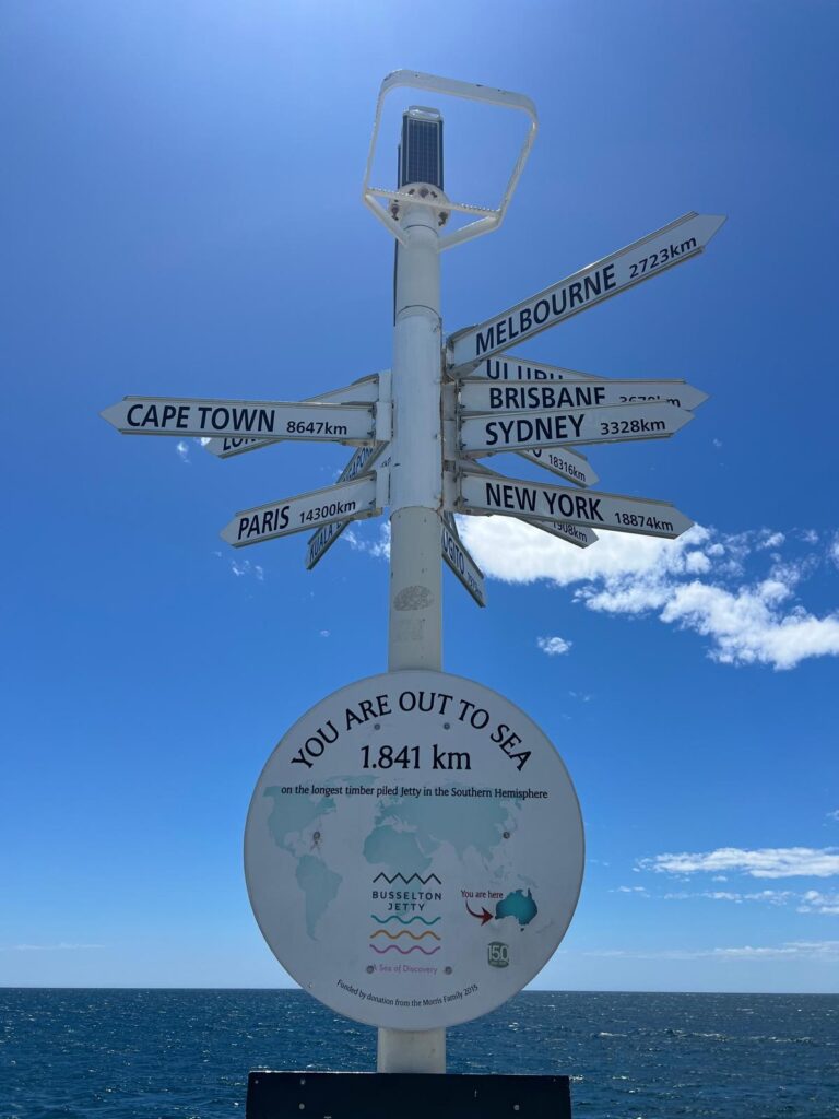 Nach drei Nächten führte uns unsere Route bis nach Busselton. Dort hatten wir uns für den 5. November einen finalen Werkstatt Termin für unser Auto gebucht, weshalb wir ebenfalls drei Nächte dort verbrachten. Die einzige Sehenswürdigkeit ist der Busselton Jetty, der 1,8km bis aufs Meer hinaus führt. Die Besonderheit liegt jedoch nicht nur in der Länge, sondern auch darin, dass es am Ende ein 8 Meter tiefes Unterwasserobservatorium gibt. Bis auf den sogenannten Humpty Dumpty Kofferfisch, der aufgrund seiner Ei-Form diesen Namen trägt, haben wir leider keine besonderen Fische sehen können. Trotzdem war es eine coole Erfahrung und die 25$ wert. 😊