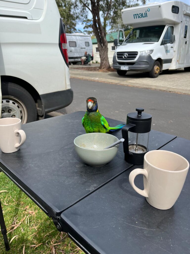Die Region rund um Margaret River ist die bekannteste Weinregion in West Australien. Unser süßer Campingplatz, der Riverview Touristpark, lag, wie der Name sagt, direkt an einem kleinen Fluss mitten in der Natur. Daher hatten wir auch am zweiten Morgen einen kleinen Besucher auf unserem Frühstückstisch. 🦜 Ansonsten bummelten wir tagsüber durch das kleine Örtchen oder kochten uns abends ein leckeres thailändisches Curry, um uns wieder ein bisschen auf Thailand einzustimmen! 😅😋