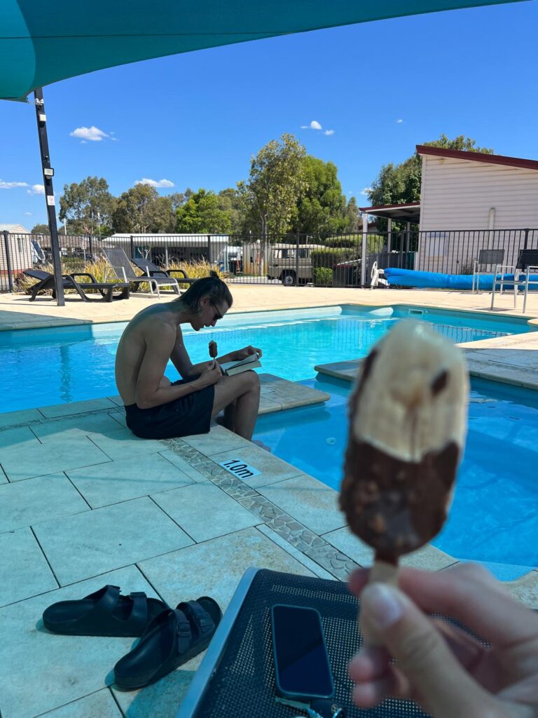 Die restlichen Tage in Perth schlenderten wir einfach nochmal durch die uns bekannten Gassen und am Hafen entlang und besuchten auch am letzten Abend ein tolles Rooftop Kino. 🌆🍿🎥 Ansonsten verweilten wir auch einfach mal stundenlang am Pool unseres Campingplatzes, um es irgendwie bei den 32 Grad aushalten zu können. ☀️