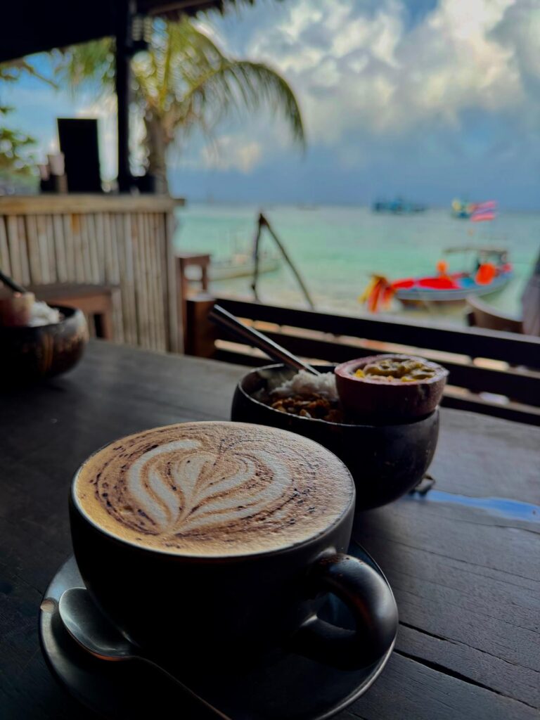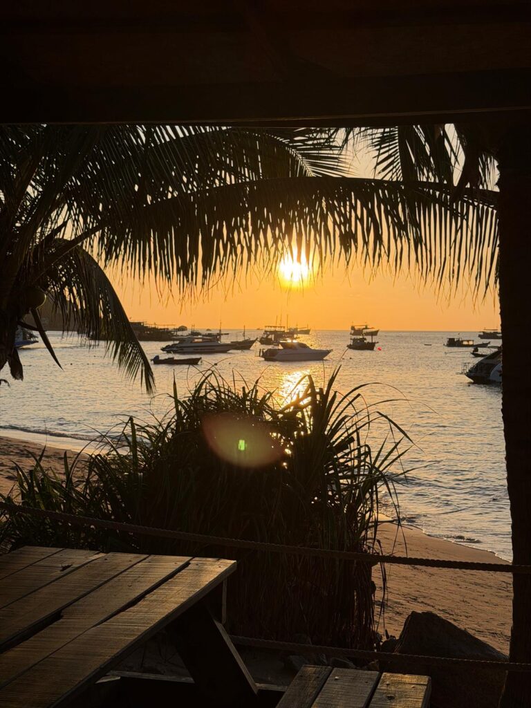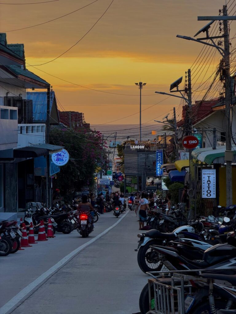 Außerhalb vom Wasser haben wir fast jeden Morgen bei unserem Lieblingsrestaurants Coconut Monkey eine leckere Smoothie Bowl gefrühstückt, bei der Maya Bar leckere Bananenshakes getrunken und gekniffelt und bei Poms das beste Red Curry gegessen. Abends konnten wir selbst von der Hauptstraße viele tolle Sonnenuntergänge bei unserem Heimweg nach dem Abendessen bestaunen.