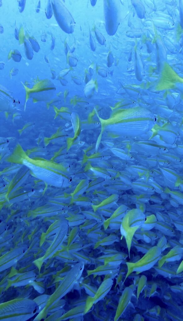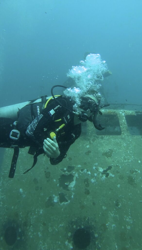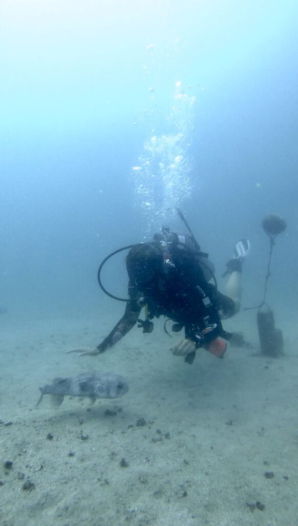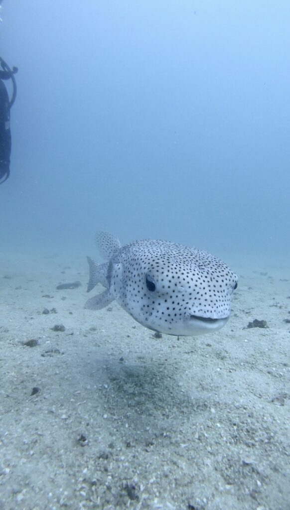 Auch wenn bei Crystal nicht mehr alle Leute von letztem Jahr arbeiten und es natürlich anders ist als damals mit Kristins Divemaster Kandidaten, haben wir einige bekannte Gesichter dennoch wiedergetroffen und es hat sich auch jeder total gefreut uns zu sehen. 🥰 Einer hat sich auf jeden Fall am meisten gefreut: Unser Freund Steve! Bei dem Tauchplatz Junkyard lebt nach wie vor der knuffige und super neugierige Kugelfisch, der jeden Taucher begrüßt sobald man den Sandboden erreicht hat! Er ist allerdings RIESIG geworden und ganz schön gewachsen in nur einem Jahr.🐡 Neben diesem Tauchhighlight war es ebenfalls cool, dass wir an einem Tag alleine zu zweit tauchen gehen durften, da Kristins Divemaster Versicherung noch bis Ende des Jahres gültig ist und wir so auch solange mit Steve spielen konnten, wie wir wollten. 😊 Ansonsten waren wir auch wieder bei einem der Schiffswracks unterwegs und bei Southwest, was bekannt für seine großen Fischschwärme ist.